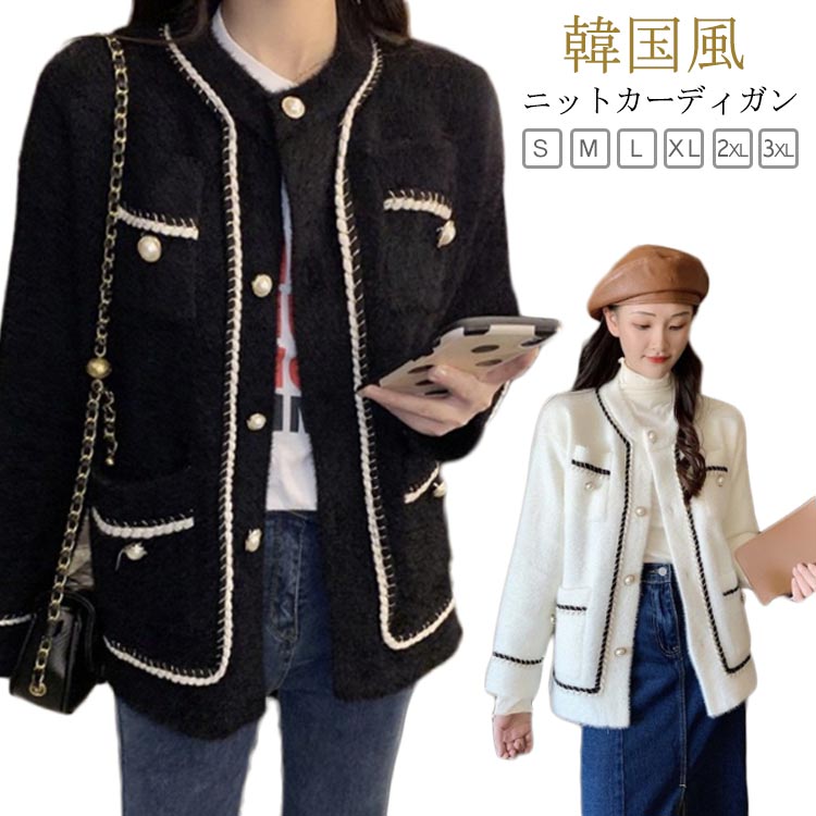 ツイード風ニットカーディガン レディース おしゃれ 30代 40代 50代 ニットカーディガン 長袖 ノーカラージャケット カーディガン ショット丈アウター 秋服 ゆったり