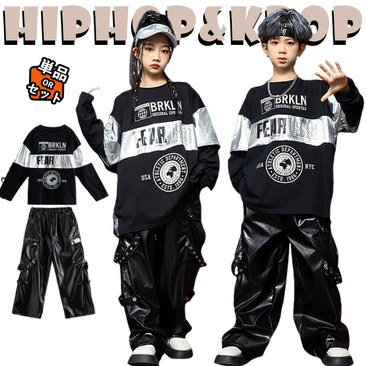 黒 トップス レザーパンツ レーシング風 キッズ ダンス衣装 セットアップ 上下セット おしゃれ 女の子 男の子 かっこいい かわいい カジュアル 長袖 ゆったり ダンスウエア ヒップホ