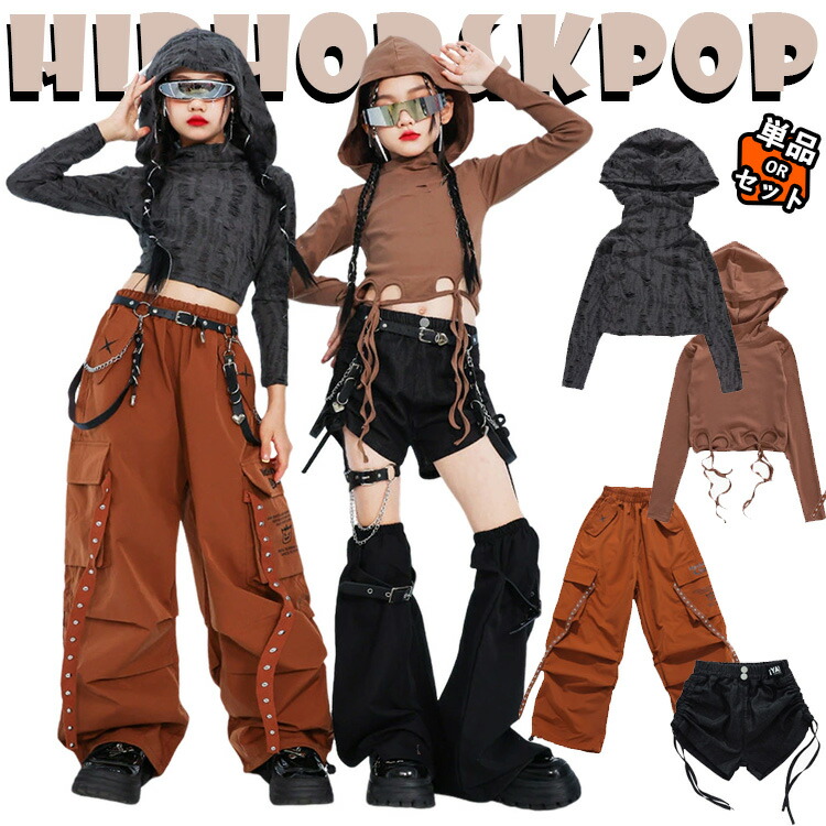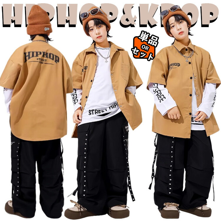 黒色 茶色 キッズ ダンス衣装 半袖 セットアップ 女の子 男の子 子供 シャツ トップス サルエルパンツ カーゴパンツ ヒップホップ ジャズダンス 演出服 練習着 団体服 応援団 発表会