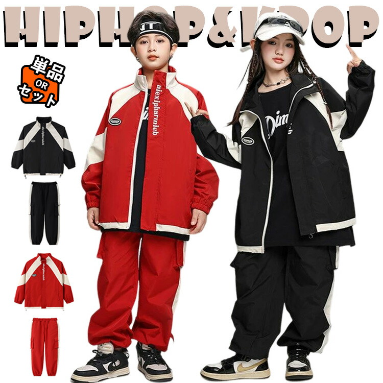 赤 黒色 ユニセックス衣装 キッズ ダンス衣装 セットアップ 女の子 男の子 スタジャン ジャケット ゆったり トップス スウェットパンツ 韓国 K-POP ジャズダンス ヒップホップ 演出服