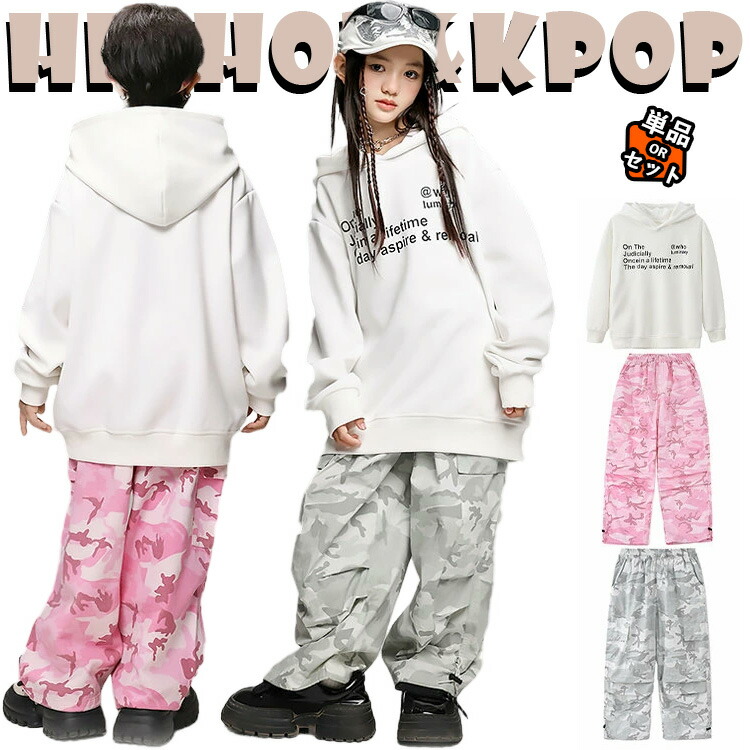 ユニセックス衣装 キッズ ダンス衣装 セットアップ 女の子 男の子 長袖 ゆったり パーカー トップス かっこいい 迷彩柄 カーゴパンツ ヒップホップ ジャケット 韓国 k-pop ファッショ