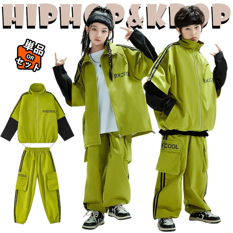 スウェット セットアップ グリーン ジャケット ウェストパンツ シャツ キッズ ダンス衣装 上下セット おしゃれ 女の子 男の子 かっこいい かわいい 長袖 ゆったり ダンスウエア ヒッ