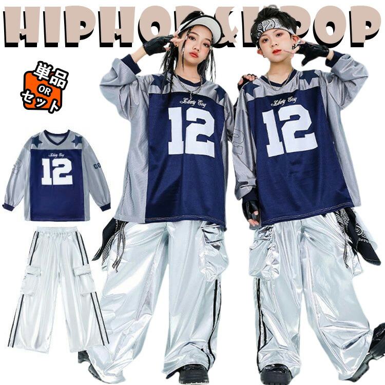 キッズ ダンス衣装 ネイビー トップス シルバー レザー カーゴパンツ 手袋 レーシング風 セットアップ 上下セット おしゃれ 女の子 男の子 かっこいい かわいい ダンスウエア ヒップ