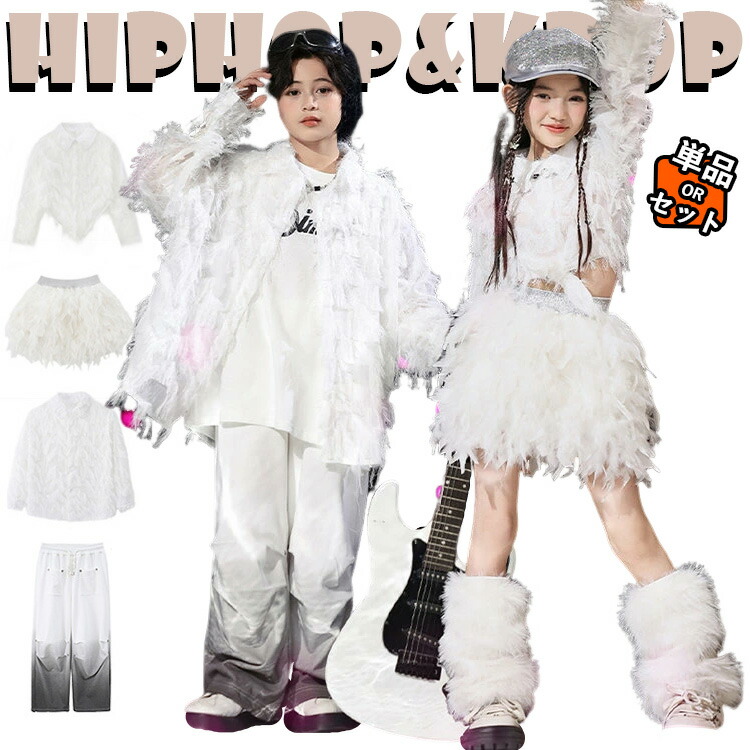 キッズ ダンス衣装 セットアップ 女の子 男の子 白色 羽柄 シャツ ショート丈トップ ファッション トップス スカート サルエルパンツ カーゴパンツ 韓国 k-pop ジャズダンス ヒップホ