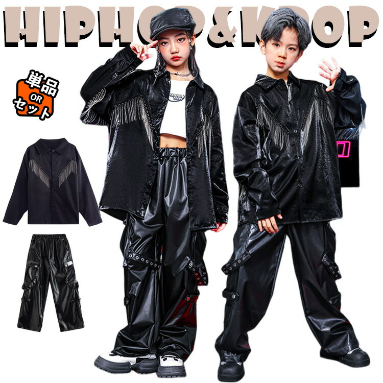 タッセル 黒 革パンツ キッズ ダンス衣装 女の子 男の子 長袖 シャツ ジャケット トップス パンツ セットアップ カジュアル かっこいい ダンスウェア ヒップホップ ジャズダンス ポ