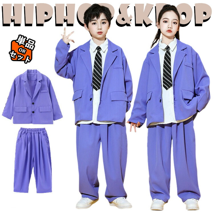 パンツスーツ パープル ファション フォーマル スーツ ジャケット パンツ キッズ ダンス衣装 セットアップ 上下セット おしゃれ 女の子 男の子 かっこいい かわいい シャツ ダンスウ