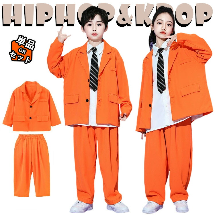 オレンジ パンツスーツ フォーマル スーツ ファション ジャケット パンツ キッズ ダンス衣装 セットアップ 上下セット おしゃれ 女の子 男の子 かっこいい かわいい シャツ ダンスウ