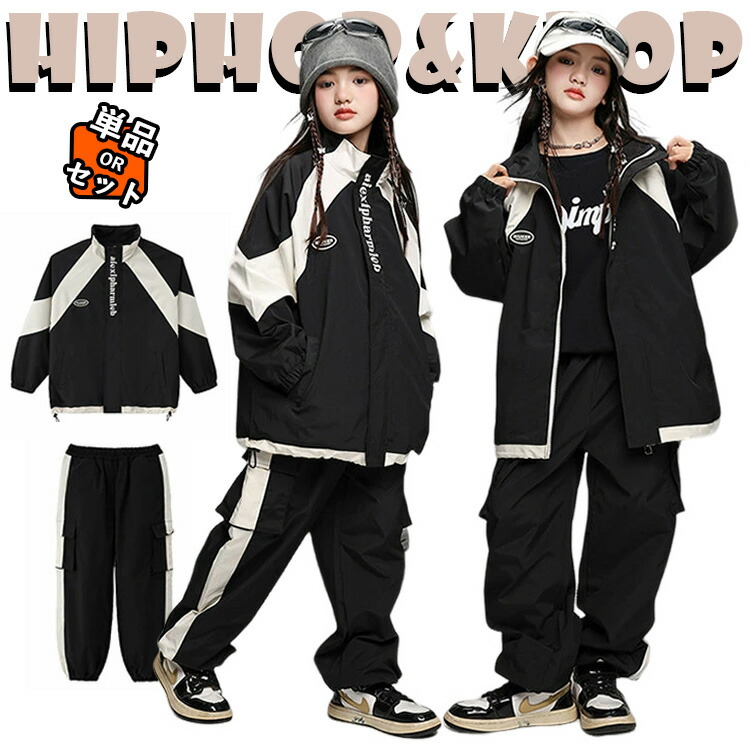ユニセックス衣装 キッズ ダンス衣装 セットアップ 長袖 スタジャン ジャケット カジュアルシャツ 女の子 男の子 トップス 黒色 カーゴパンツ ヒップホップ ジャズダンス 韓国 ファッ