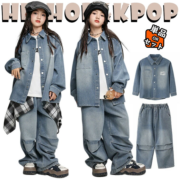 ユニセックス衣装 デニム セット キッズ ダンス衣装 セットアップ 女の子 男の子 カジュアルシャツ 長袖 シャツ カジュアルシャツ トップス かっこいい パンツ ヒップホップ ジャケッ