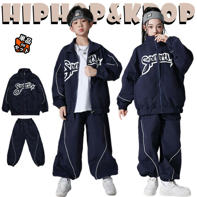 キッズ スウェット トップス ネイビー パンツ ダンス衣装 セットアップ 上下セット おしゃれ 女の子 男の子 かっこいい かわいい 長袖 ジャケット カジュアルパンツ ダンスウエア ヒ