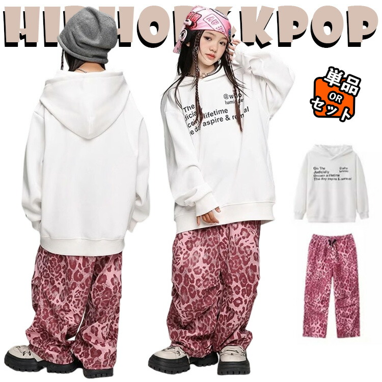 ヒョウ柄パンツ 白 ピンク パーカー キッズ ダンス衣装 男の子 女の子 ゆったり 長袖 トップス パンツ 上下セット セットアップ かっこいい ダンスウェア ヒップホップ ジャズダンス