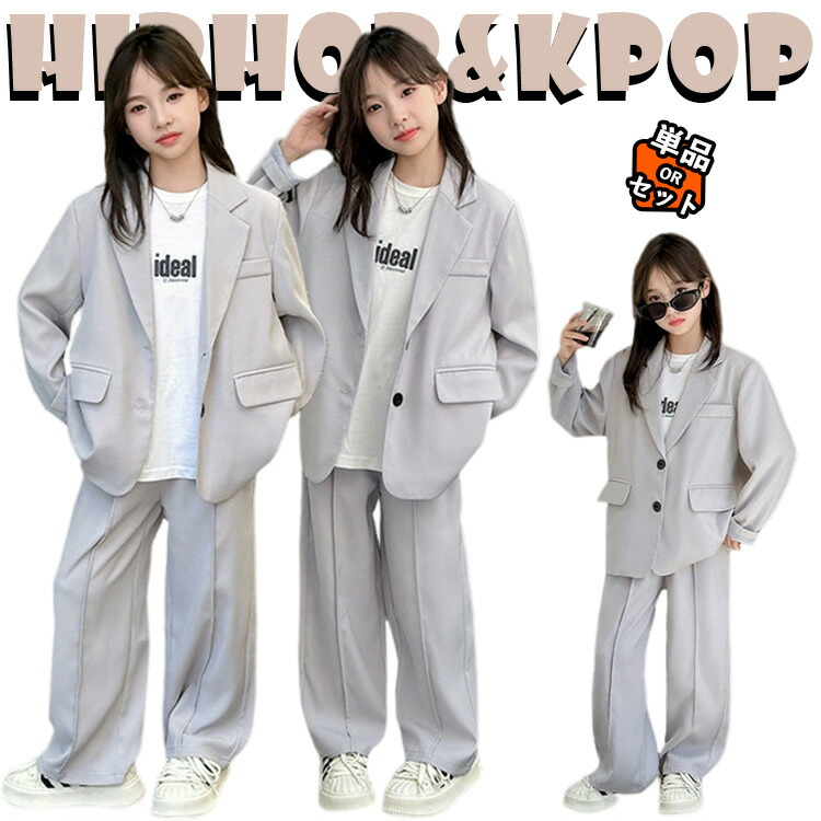 グレー スーツ パンツスーツ キッズ ダンス衣装 女の子 長袖 ジャケット パンツ ワイドパンツ セットアップ シンプル ゆったり カジュアル ジャズダンス おしゃれ ヒップホップ 個性