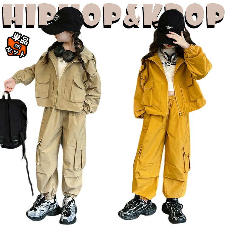 キーズ セットアップ カジュアル 子供服 春秋 ジュニア カーゴパンツ マウンテンパーカー ジャケット 長袖 韓国 無地 ゆったり キッズ 女の子 上下セット アウトドアワイドパンツ 2点