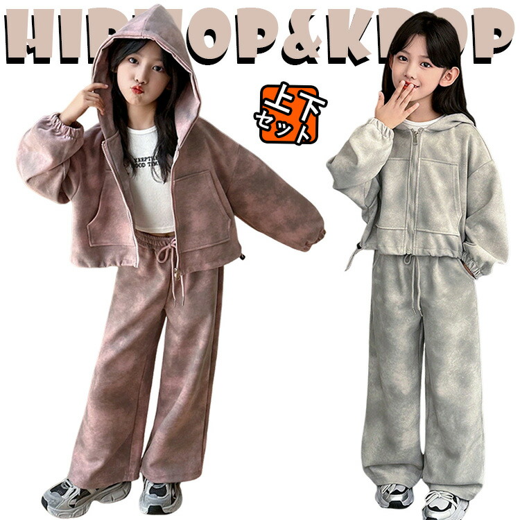 キーズ セットアップ カジュアル 春秋 秋服 ジュニア ジップアップ パーカー ジャージ 長袖 韓国 無地 ゆったり キッズ 女の子 上下セット スウェット 部屋着 子供服 長袖パーカー ワ