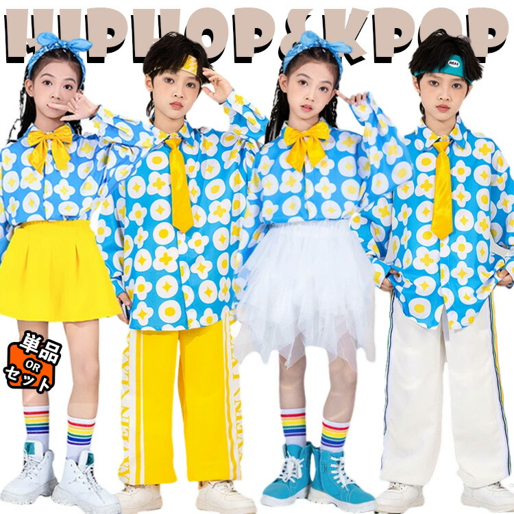 小学生 演出服 チア チアガール ブルー シャツ チュチュスカート 黄色 白 ゆったり 水玉模様 長袖シャツ スカート ズボン 女の子 男の子 スポーツパンツ キッズ ダンス衣装 上下セッ