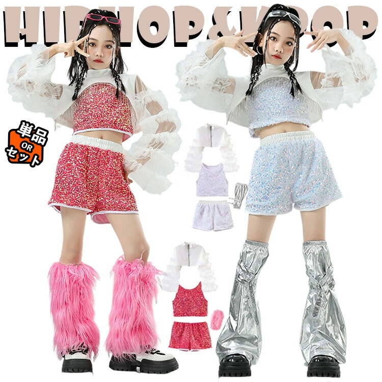 キラキラ ピンク 白 シルバーチア チアガール トップス へそ出し タンクトップ 半ズボン キッズ ダンス衣装 セットアップ おしゃれ 女の子 かっこいい 長袖 ショートトップ ダンスウ