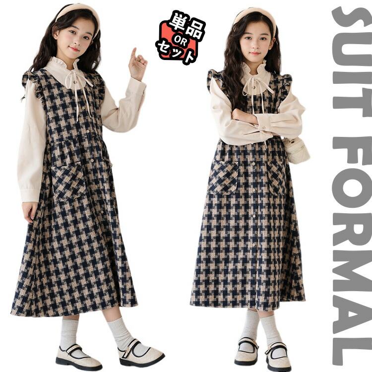 卒業式 スーツ 女の子 ワンピース 160 小学校女子 小学生 韓国 卒業式 卒服 ワンピース ピアノ発表会 重ね風 フォーマル ワンピーススーツ 長袖 ブラウン 洋服 子供服 七五三 ガール