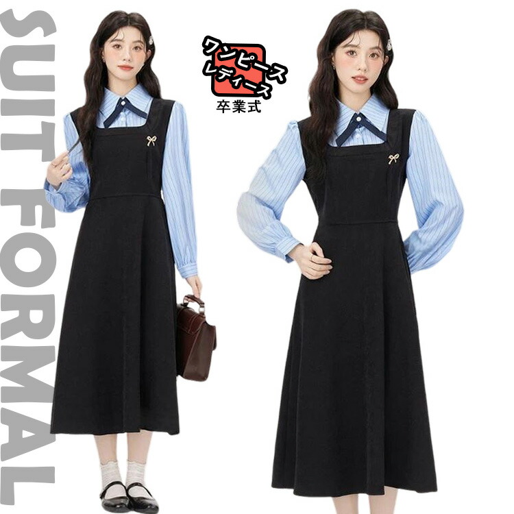 卒業式 スーツ 女の子 紺色 小学校女子 高校生 卒服 入学式 ワンピーススーツ 韓国 なんちゃって制服 ワンピース ピアノ発表会 ドレス 中学生 長袖 演奏会 ドレス フェイクレイヤード