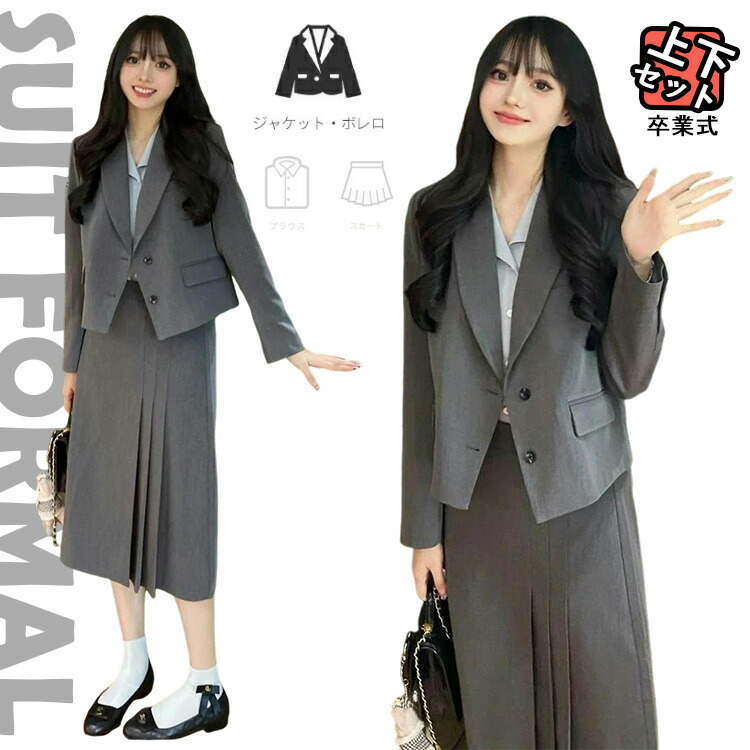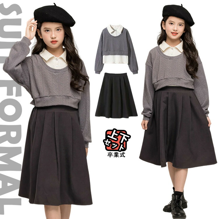 卒業式 スーツ 女の子 ニートトップス スカート 韓国 小学校女子 中学生 入学式 卒服 スカートスーツ グレー ブラック ピアノ発表会 スーツ 演奏会 長袖 ニート フェイクレイヤード 2