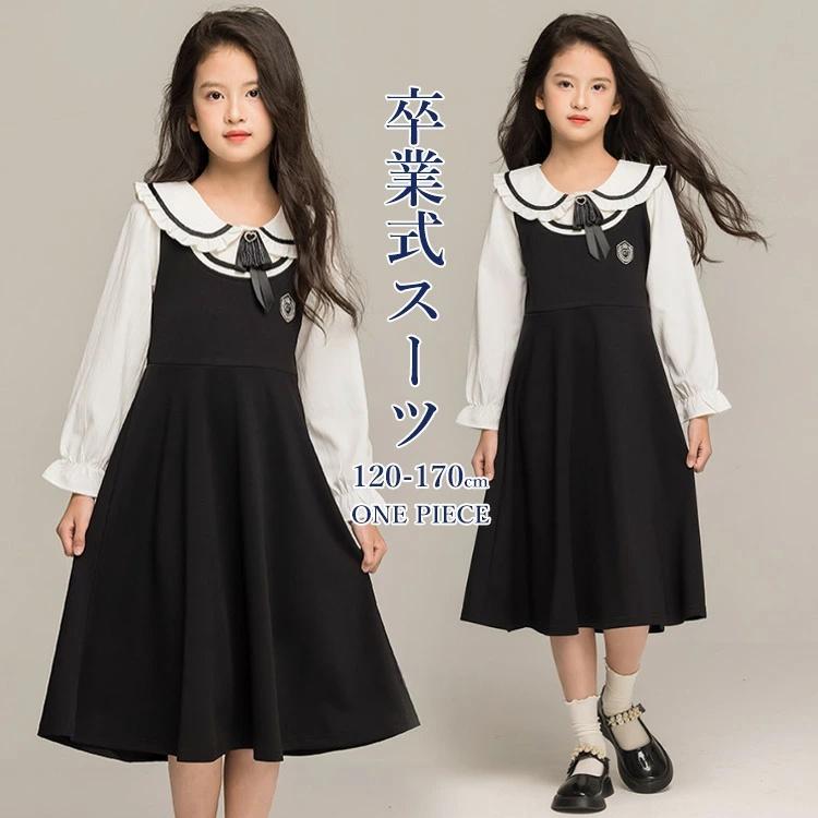 卒業式 スーツ 女の子 ワンピーススーツ 小学校女子 中学生 130 150 韓国 制服 入学式 卒服 ワンピース ブラック ピアノ発表会 ドレス 女子 長袖 演奏会 ドレス フェイクレイヤー