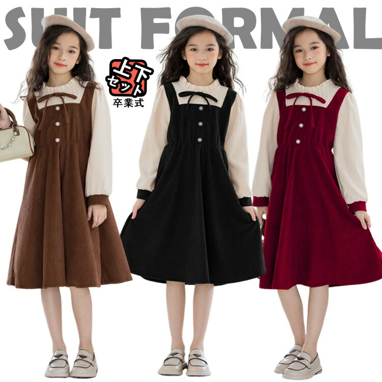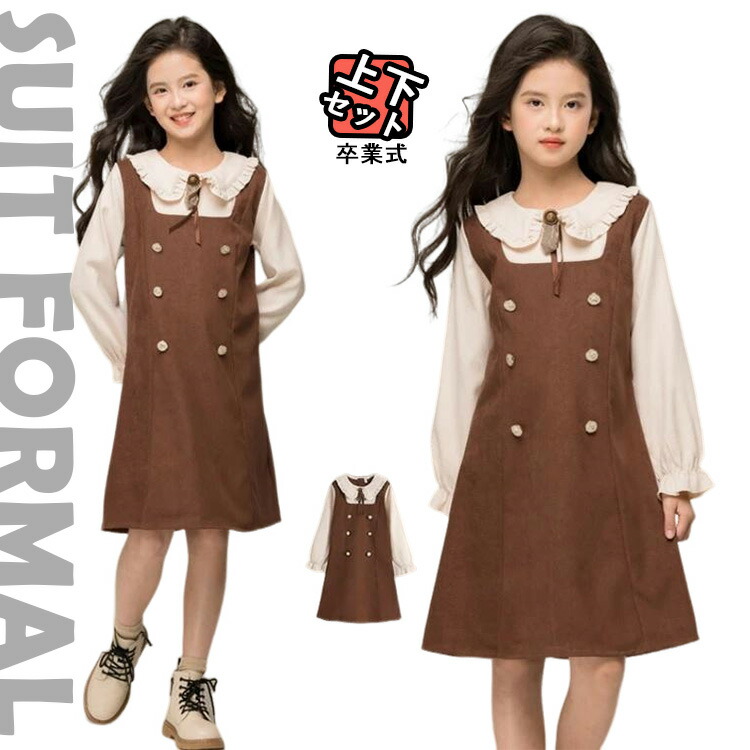 卒業式 スーツ 女の子 ワンピーススーツ 小学校女子 中学生 韓国 入学式 卒服 ワンピース ブラウン レッド ピアノ発表会 ドレス 長袖 演奏会 ドレス フェイクレイヤード 裏起毛 フォ
