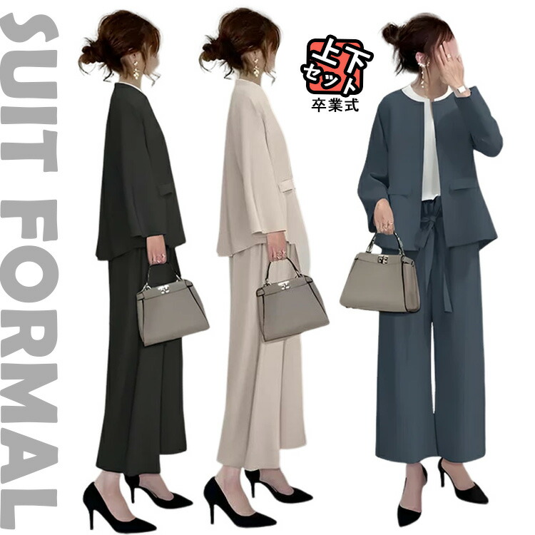 入学式 ママスーツ パンツスーツ レディース セット 2点セット 卒業式 スーツ 母 30代 40代 着回し フォーマル テーパードパンツ 洗える スーツ ノーカラー 母親 スーツ きれいめ 大