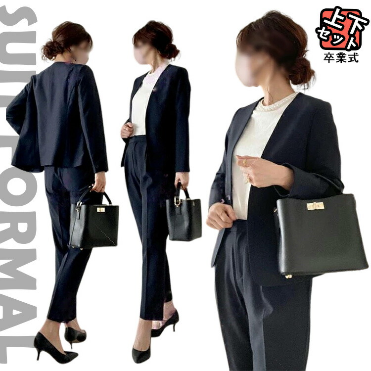 卒業式 スーツ 母 30代 スーツ レディース セット 2点セット ネイビー 入学式 ママスーツ 40代 母親 着回し きれいめ ノーカラー フォーマル パンツスーツ 洗える パンツスーツ 体型