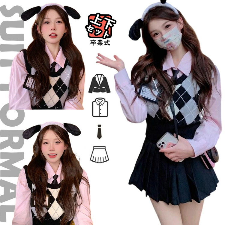 卒業式 スーツ 女の子 韓国 制服 ベスト セーター 小学生 高校生 なんちゃって制服 卒服 女の子 4点セット 韓国 高校生 レディース フォーマルスーツ 大きいサイズ 子供服 入学式 子