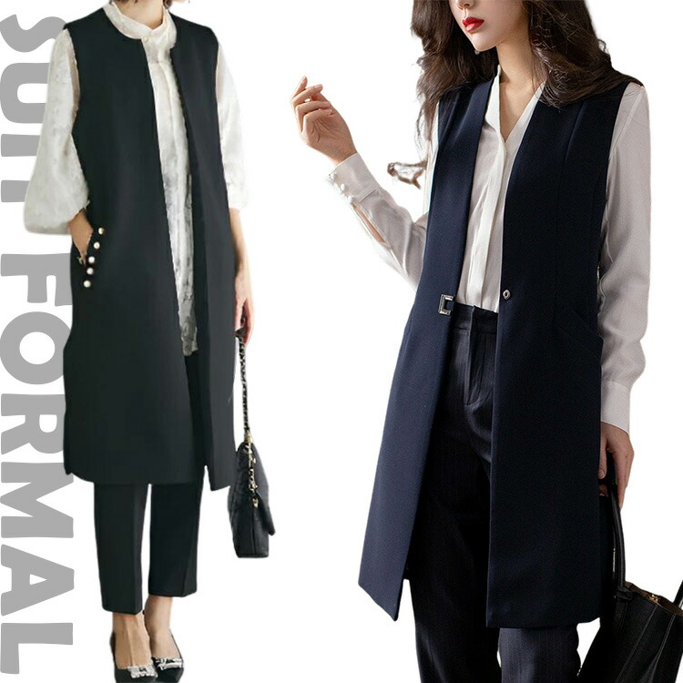 ベスト レディース ロング丈 パール ベスト ロング 紺色 黒 母 入学式 ママ 30代 40代 ベスト フォーマル きれいめ 洗える 着回し 卒業式 羽織 スーツ 母親 入園式 おしゃれ 大きいサ