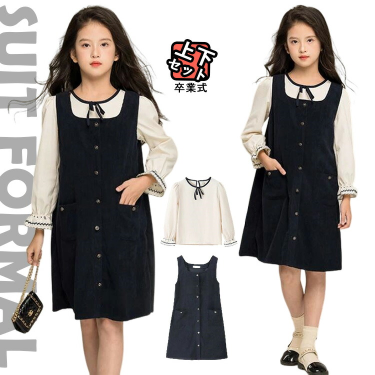 卒業式 スーツ 女の子 ピアノ発表会 ワンピース 卒服 韓国 なんちゃって制服 紺色 小学生 高校生 入学式 ワンピーススーツ ドレス 女子 中学生 長袖 演奏会 ドレス フェイクレイヤー