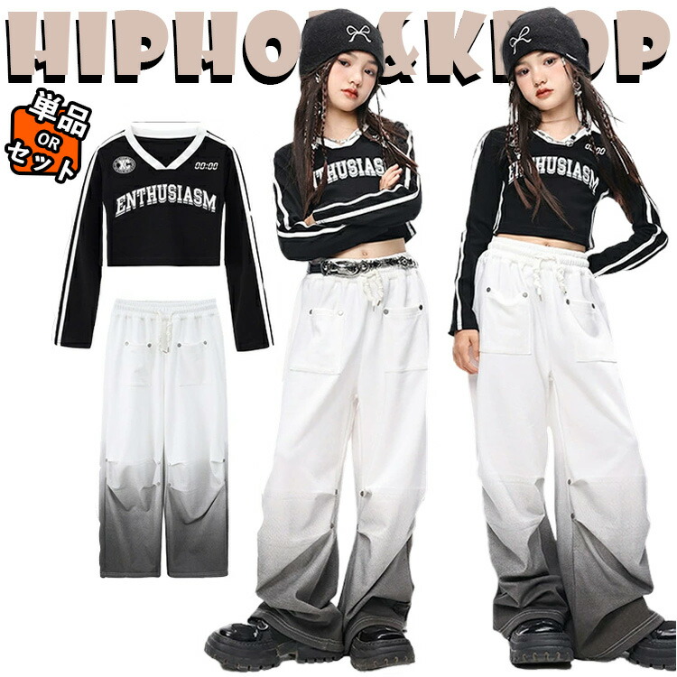 ダメージ グラデーション へそ出し キッズ ダンス衣装 セットアップ 女の子 ファッション ゆったり トップス ショート丈 サルエルパンツ カジュア 韓国 - ジャズダンス ヒッ