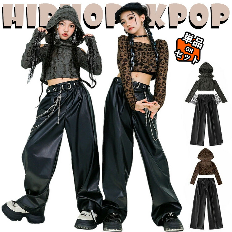 韓国 jazz 黒 ベスト キャミソール 豹柄 ウェストパンツ スカート ベルト キッズ ダンス衣装 セットアップ 上下セット おしゃれ 女の子 子供 かっこいい かわいい 半袖 トップス ダン