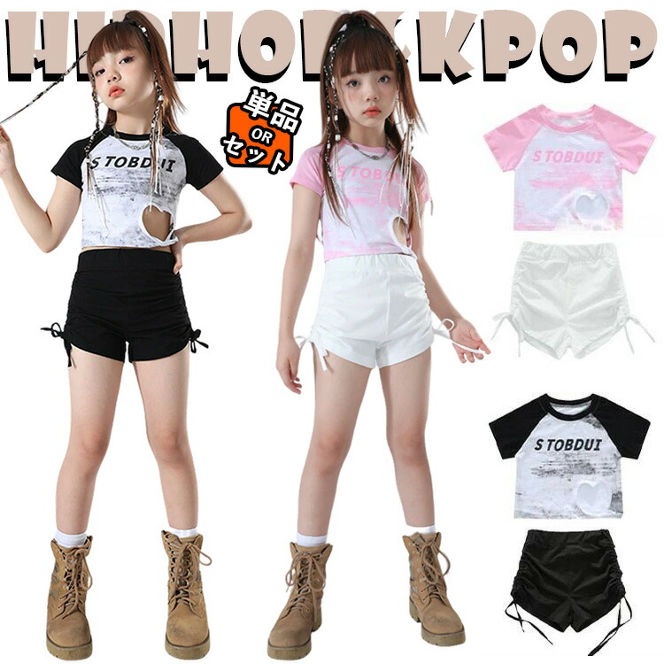 jazz チア チアガール 女の子 半ズボン ショートトップ へそ出し ピンク 黒 白 セットアップ チアリーダー ブラック ホワイト 可愛い かっこいい ジーンズダンス 半袖 トップス Tシャ