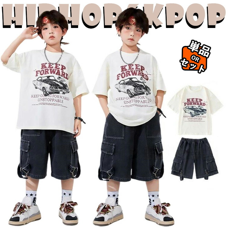 カーゴパンツ シャツ Tシャツ セットアップ 女の子 男の子 キッズ ダンス衣装 ホワイト 白 黒 ゆったり ワイドパンツ 半ズボン 半袖 柄シャツ ダンス かっこいい おしゃれ ヒップホ