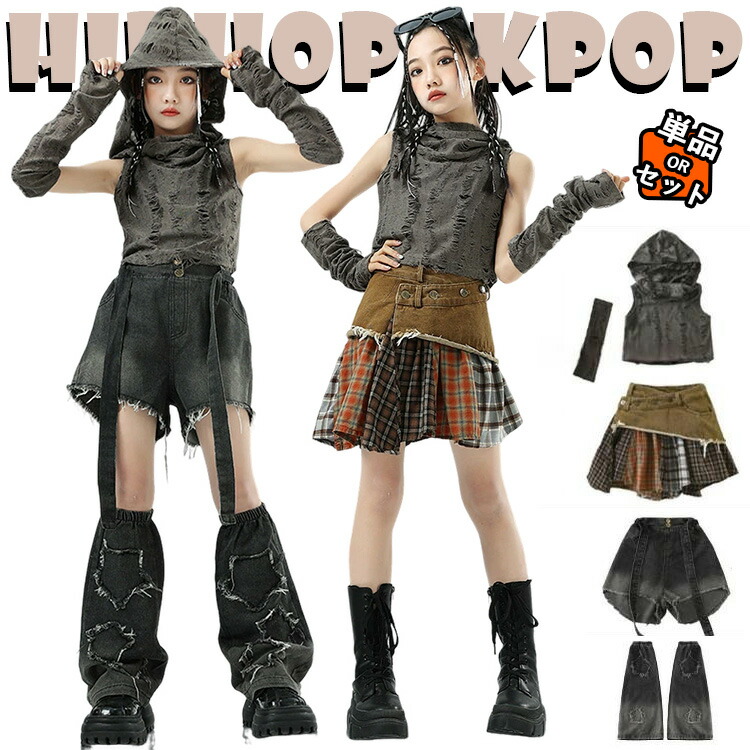 チェック柄 黒 デニム短パン デニムスカート ショートトップ へそ出し jazz 韓国k-pop ホワイト グレー 女の子 チア チアガール スカート 半ズボン セットアップ トップス キッズ ダ
