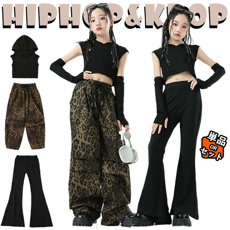 豹柄 黒 白 jazz チア チアガール カーゴパンツ セットアップ 女の子 韓国k-pop チアリーダー へそ出し タンクトップ ショートトップ フード付き ワイドパンツ ジャズ ダンス 袖無し