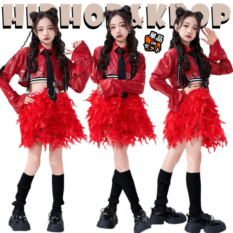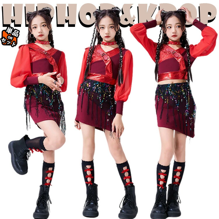 韓国 赤 トップス スカート ベルト レッグウォーマー キッズ ダンス衣装 セットアップ 上下セット おしゃれ 女の子 かわいい かっこいい へそ出し ファション ダンスウエア ヒッ