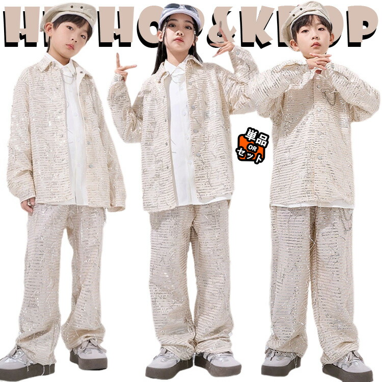 キッズ ダンス衣装 ベージュ ジャケット カジュアルパンツ 白シャツ セットアップ 上下セット おしゃれ 女の子 男の子 ゆったり かっこいい かわいい 長袖 ダンスウエア ヒップホップ