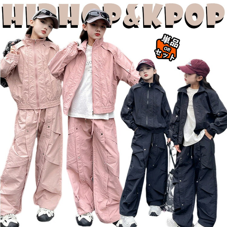 カジュアル ピンク ブラック 女の子 セットアップ マウンテンパーカー カーゴパンツ ジャケット 子供 ゆったり 韓国 春秋 かっこいい おしゃれ キッズ ダンス衣装 上下セット ヒップ