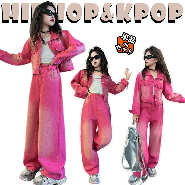 ピンク デニムパンツ デニムジャケット セットアップ 女の子 カジュアル 韓国 k-pop jazz 子供 かっこいい グラデーションカラー おしゃれ 春秋 キッズ ダンス衣装 上下セッ