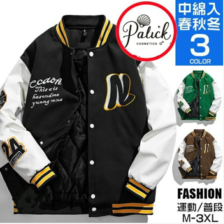 スタジャン メンズ ワッペン 暖かい 中綿 アウター スタジアムジャンパー ビッグシルエット ブルゾン 秋冬
