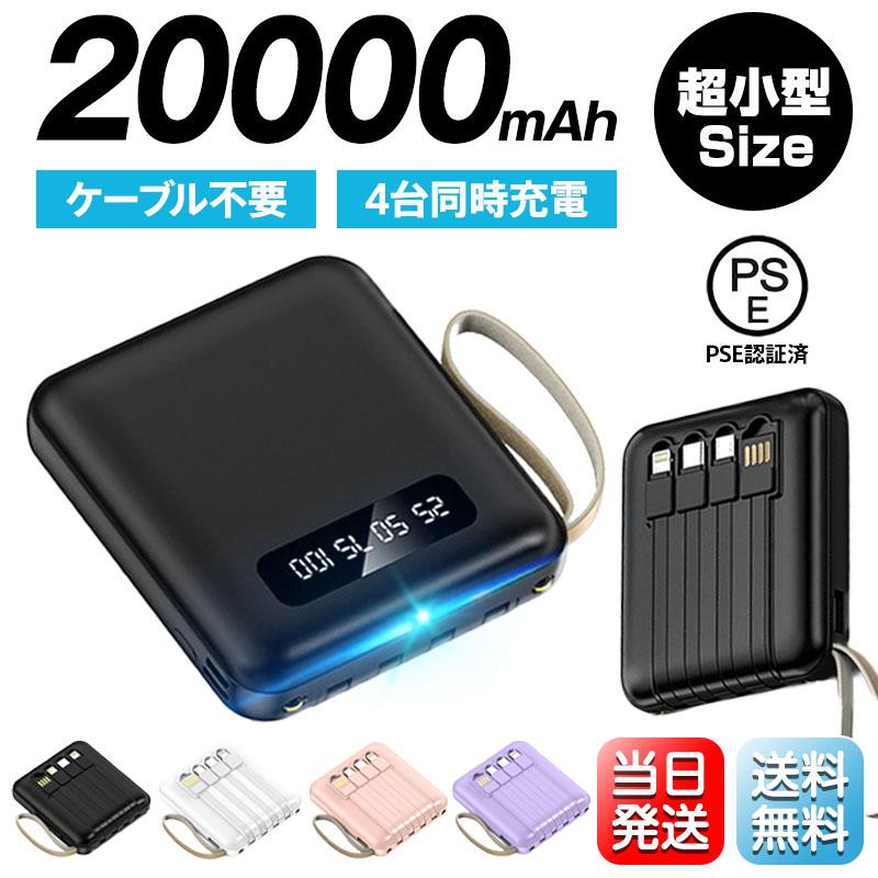 モバイルバッテリー 大容量 小型 軽量 22800 薄型 5台同時充電 急速充電 5 2.4 スマホ充電器 4本ケーブル内蔵 対応
