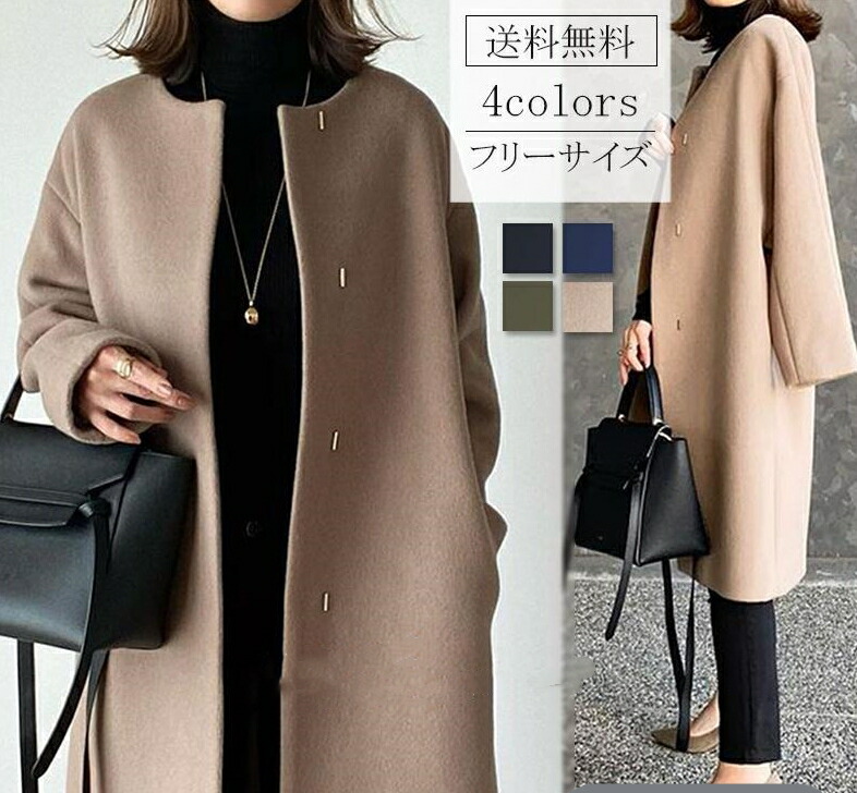チェスターコート秋冬アウター レディース 秋 40代50代 ロング丈チェスターコートアウターノーカラーコート シンプル 着痩せ 通勤 気質 エレガント2024新作