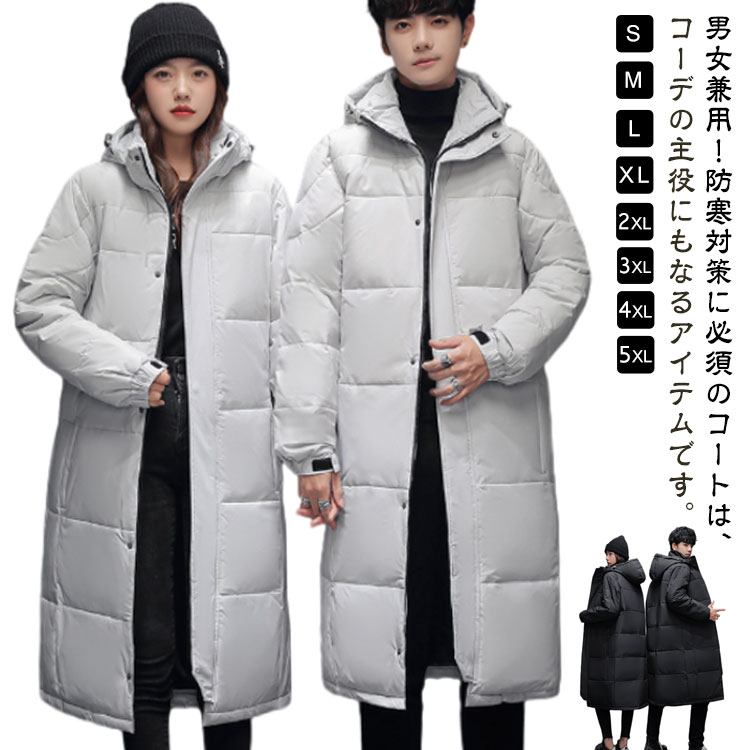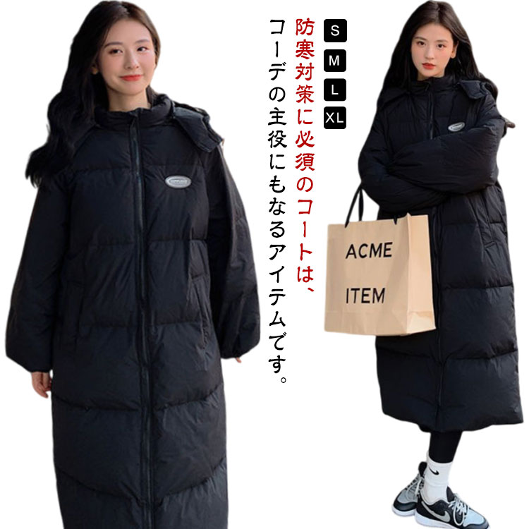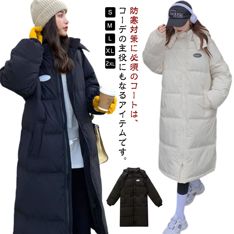 ダウンジャケット 防寒 アウター 秋冬 厚手 スタッフコート ロングコート ダウンコート 無地 ロング丈 ベンチコート フード付き 軽量 ホワイト ブラック