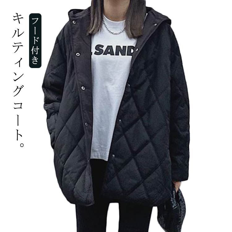 中綿コート 中綿ジャケット アウター フード付き 長袖 暖かい 膝上 ミドル丈 中綿 防寒着 軽量 あったか キルティング ジャケット 60代 50代 40代 30代
