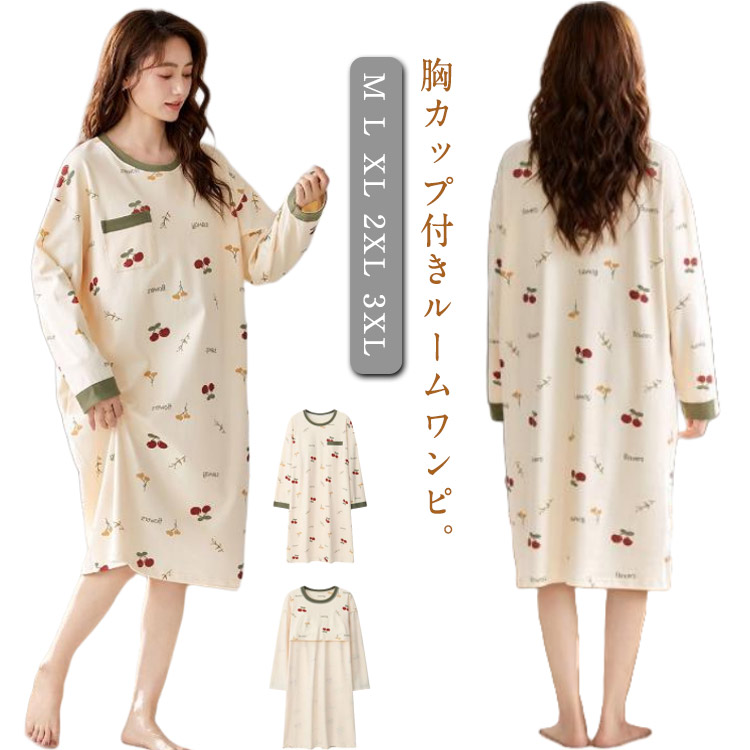 パジャマ レディース ルームワンピース ネグリジェ 長袖 ロング丈 胸パッド付き マキシワンピース パジャマ ネグリジェ ロング丈 部屋着