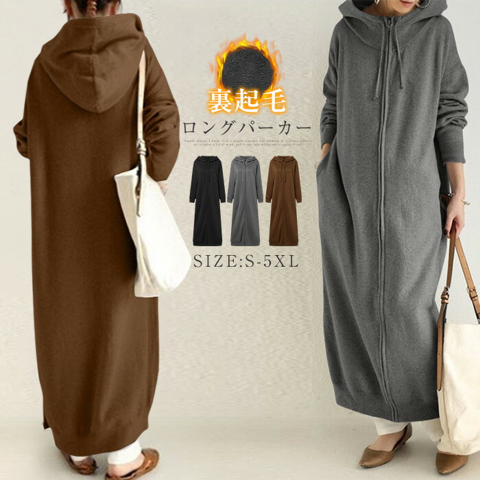 パーカー レディース 秋 春 裏起毛 パーカー ロング丈 ジップアップパーカー フード付き パーカー コート トップス 大人 軽量 シンプル 無地 普段着