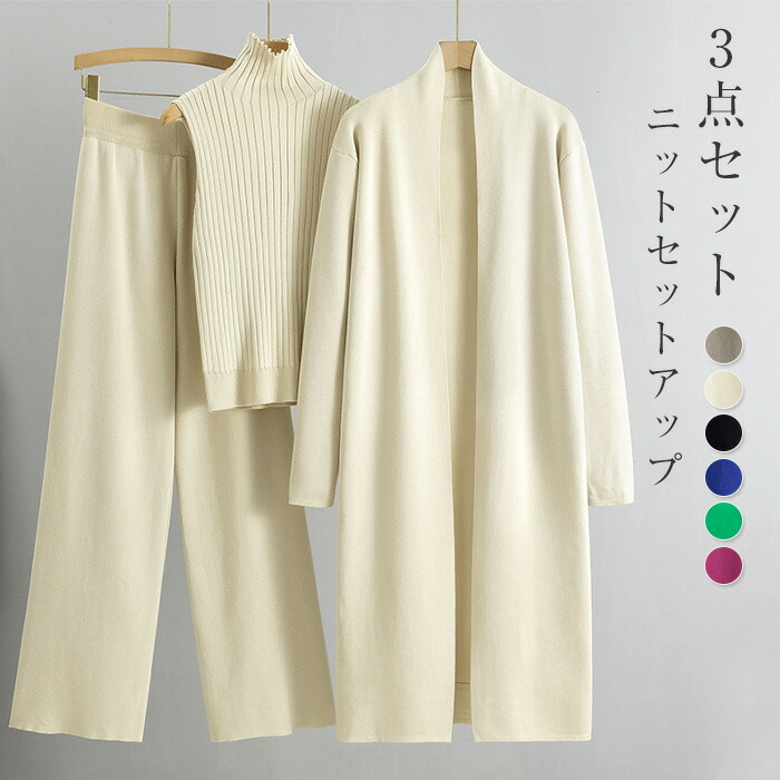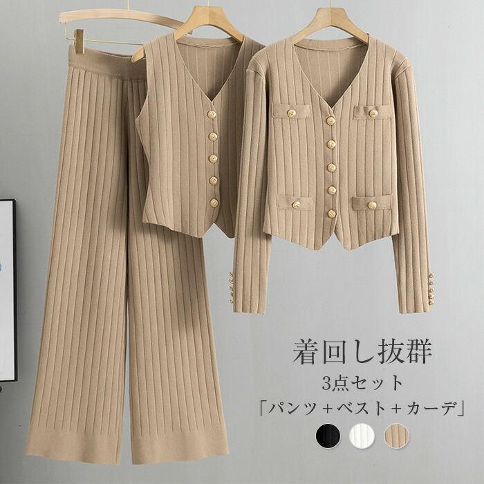 ニットセットアップ レディース 春 秋 冬 セットアップ ニット 3点セット ニット カーディガン ベスト ワイドパンツ ニットセット パンツスーツ ニットカーディガン ベスト パンツ