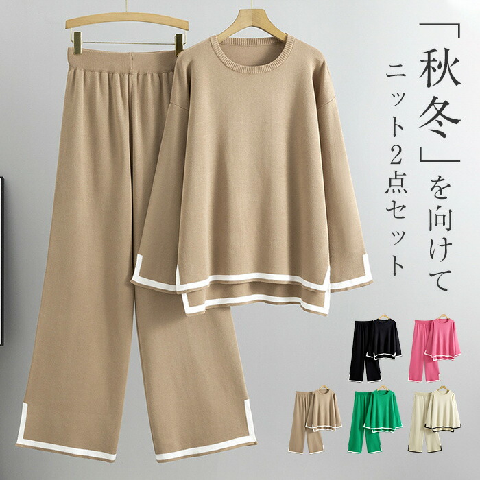 セットアップ レディース ニット ワイドパンツ セーター パンツスーツ 2点セット ニットワイドパンツ ロング丈 トップス ニット セーター 長袖 春 秋 冬 ゆったり 大きいサイズ