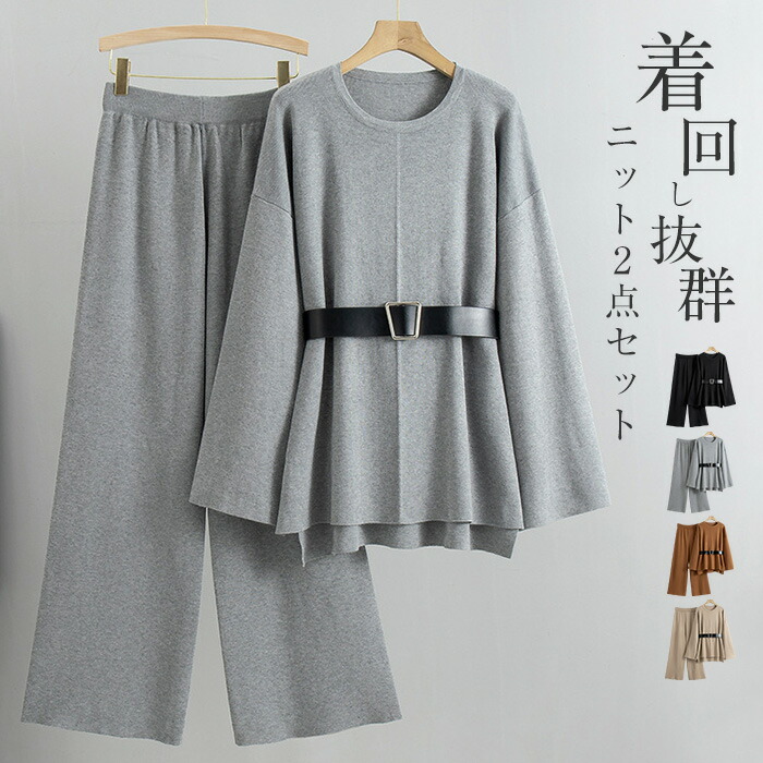 セットアップ レディース セーター ゆったり ニット ワイドパンツ セーター パンツスーツ 2点セット ニットワイドパンツ ロング丈 トップス 長袖 春 秋 冬 ゆったり 大きいサイズ